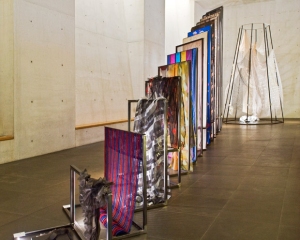 Die Stoffkreationen aus drei Jahrzehnten effektvoll beleuchten, war die Aufgabe für die Ausstellung „30 Jahre Stoffvisionen“ von Ulf Moritz, der als Stoff-Magier gilt. Der Textil-Designer zeigt im Neuen Museum Nürnberg die ganze Vielfalt seiner Stoff-Kreationen, die durch ein ausgeklügeltes Beleuchtungs-Konzept an maßangefertigten Stahlträgern in Szene gesetzt wurden.