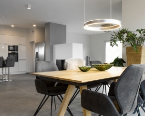 Die Planungsphase begann im Januar 2019, in denen Frau Hirschmann und ihr Team die Wünsche der Bauherren mit der Idee des Lichtkonzeptes in Einklang brachten. Die Montage der Leuchten erfolgte dann im Oktober 2019. Das Ergebnis der Licht-Planung und -Gestaltung bringt das moderne Design des Hauses zum Strahlen.